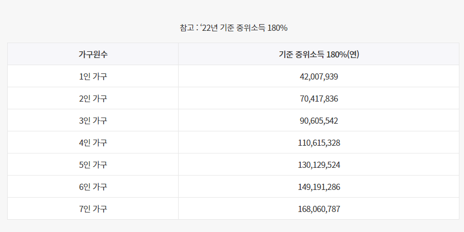 * 가구소득 : 가구원 수에 따른 기준 중위소득 180% 이하에 해당하는 자